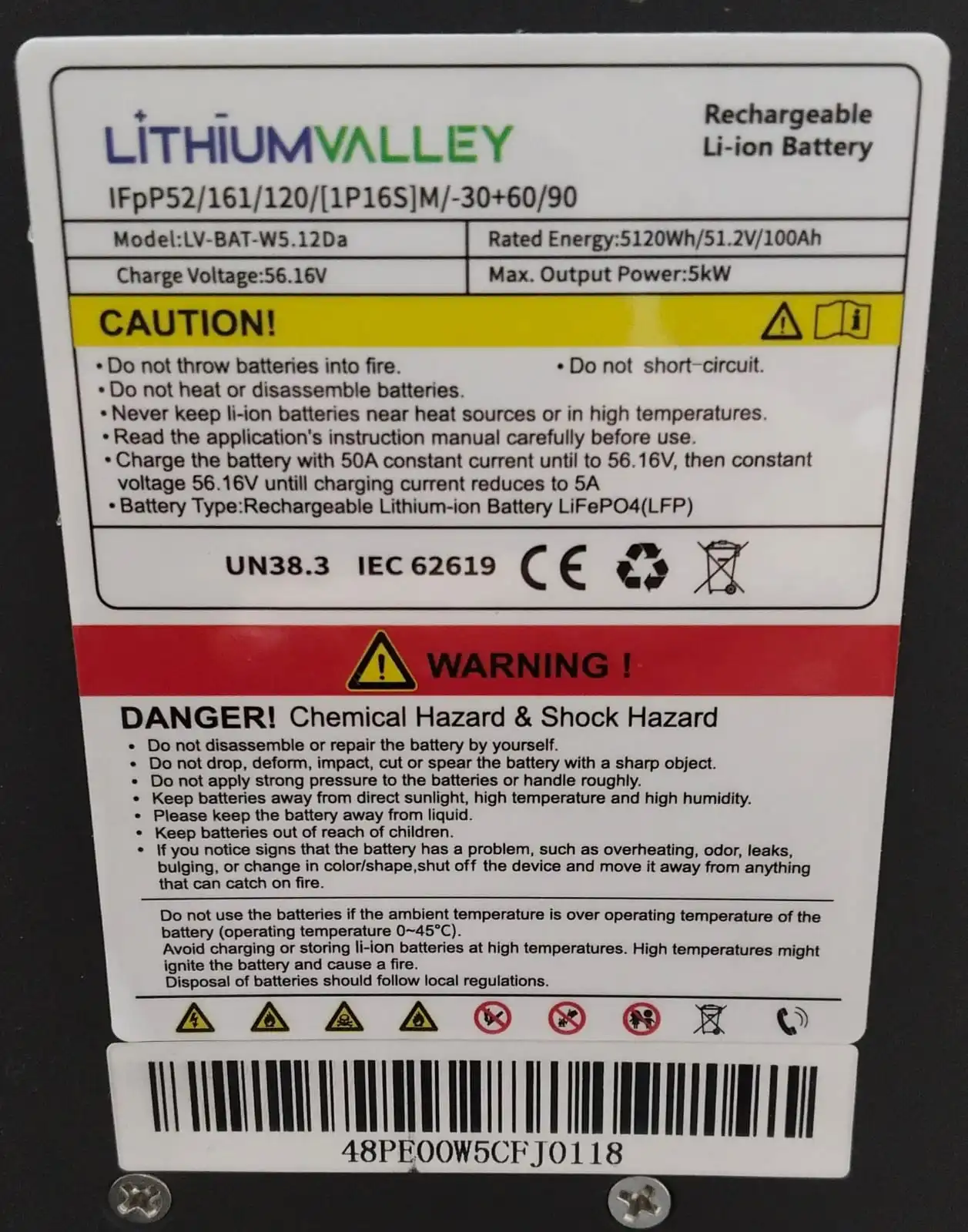 Lithium Battery Lithiuvalley 51.2V 5KW