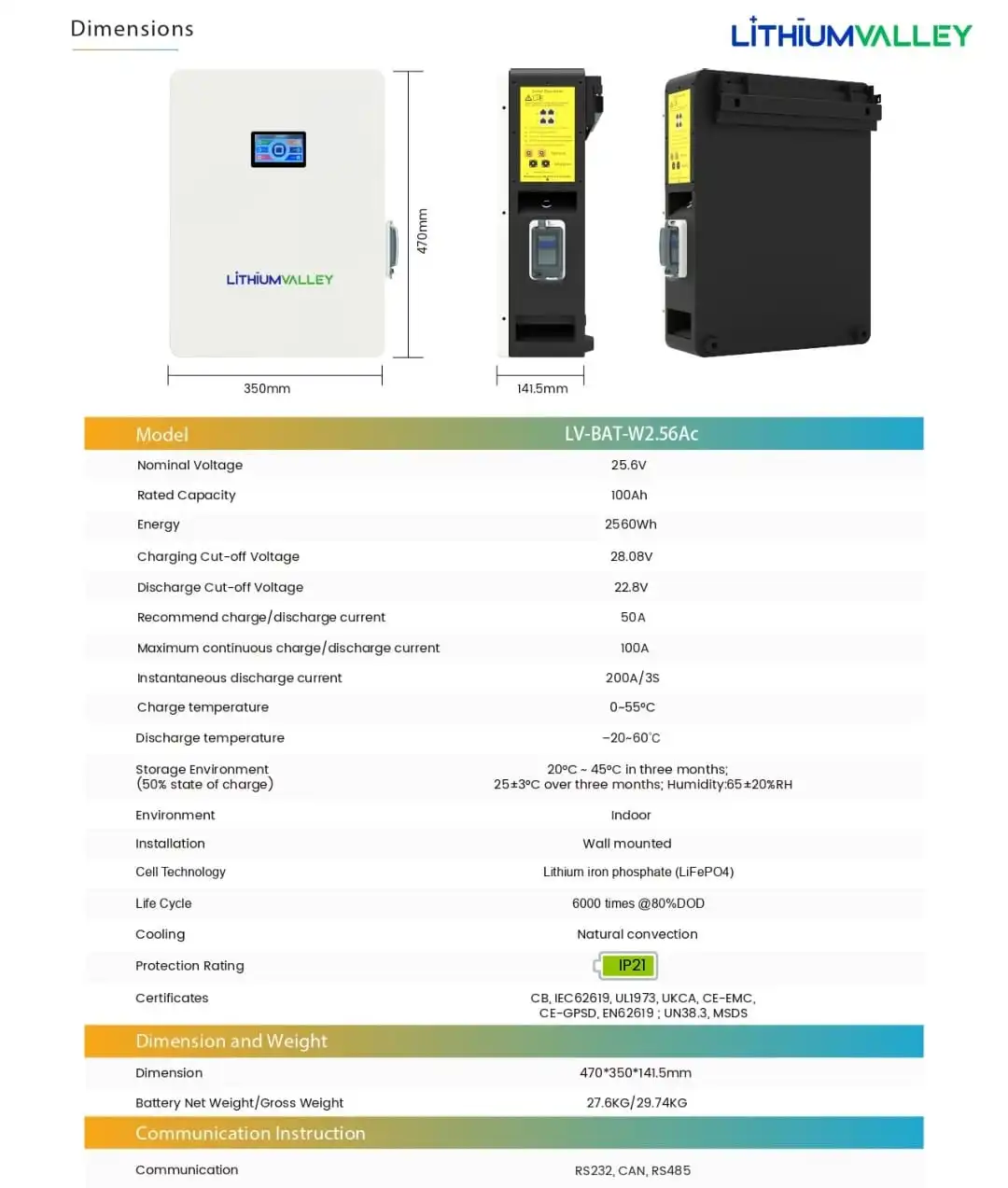 The Lithium Valley Battery 2.56 kW 26.6 V is a premium LiFePO₄ lithium battery engineered for dependable energy storage in solar systems. With its advanced Battery Management System (BMS), long cycle life, and stable discharge performance, it ensures consistent power for off-grid, hybrid, and backup solar installations. Designed for efficiency and safety, the Lithium Valley 2.56 kW battery supports fast charging, deep cycling, and high temperature resistance—making it ideal for homes, offices, and commercial solar setups in Pakistan. Choose SunLightSolar.pk for authentic Lithium Valley batteries and discover durable, maintenance-free energy storage solutions that maximize solar efficiency and lower electricity bills.